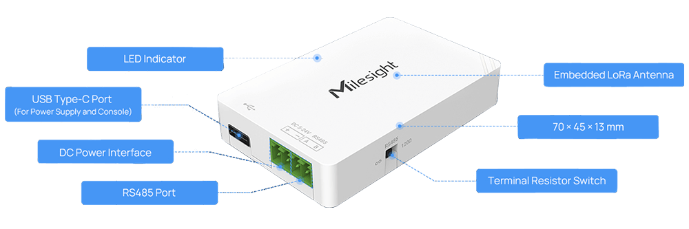 Il convertitore Modbus RS485 – LoRaWAN UC100 è un dispositivo semplice e intelligente dedicato alla raccolta di dati dai dispositivi Modbus RTU in loco e alla loro trasmissione su Internet tramite LoRaWAN®.